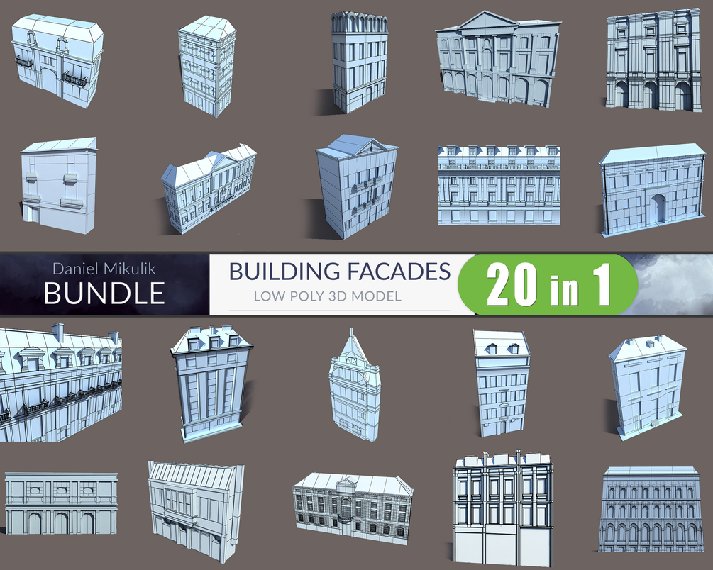Save 320$ and buy 20 Low poly 3d models of Buidling Facades BUNDLE!